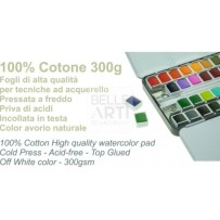"ARTISTIC" WATERCOLOR PAPER 100% COTTON SIZE 56X76 GR. 300 EN "Artistic" paper represents the culmination of eight centuries of papermaking tradition Fabriano. Artistico is a watercolor paper made with 100% cotton fibres machined in the round, a particular industrial process that reproduces the typical ones characteristics of handmade paper, therefore also called "machine hand". Today Fabriano strengthens the value of its "Artistic" card through quality superior and a presentation befitting its reputation. Here are the highlights that distinguish this paper: improved surface sizing, more surface resistant, 4 intact edges, fixed stitch watermark, Vegan Friendly product. Artistico is available in 2 shades of b